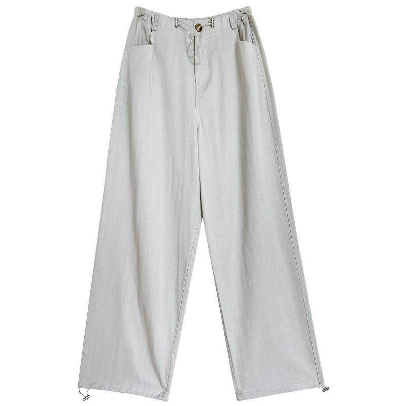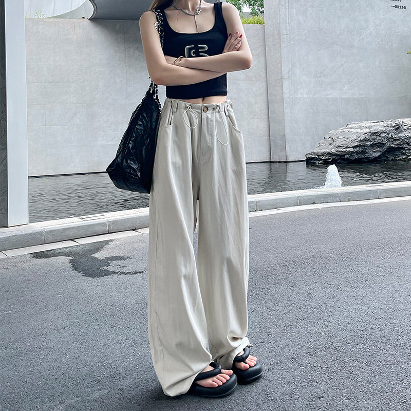 灰白色工装阔腿裤女春秋夏辣妹抽绳降落伞裤宽松休闲百搭直筒裤子