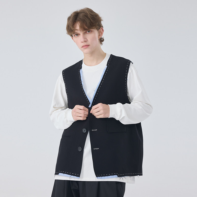 TIANHE YOUNI 2025春秋新款原创设计马甲男士黑色马甲外套