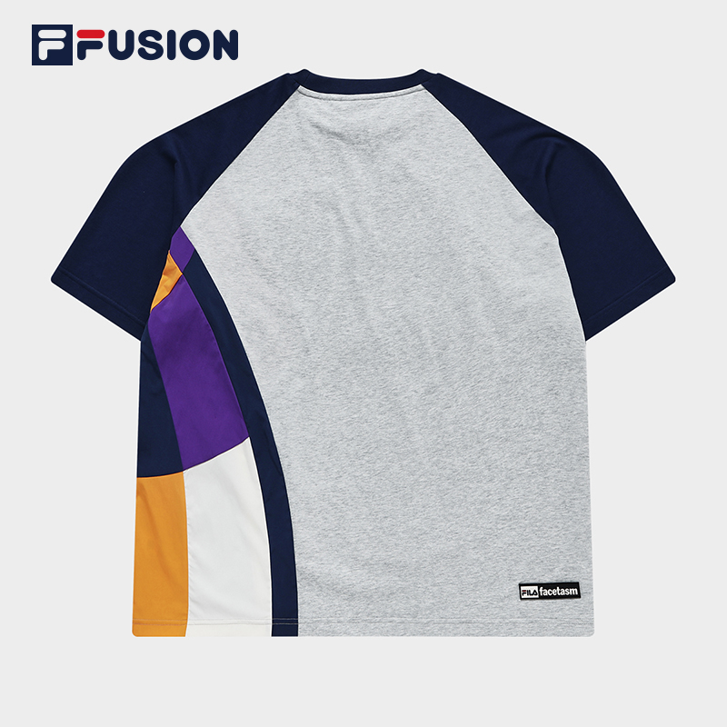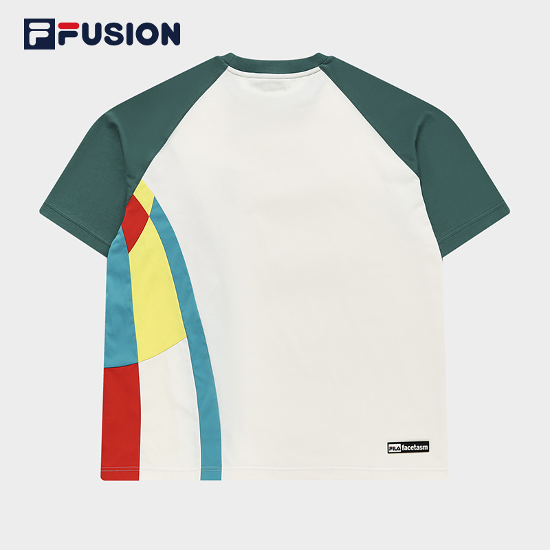 FILA FUSION斐乐潮牌男子短袖T恤2023春季时尚宽松撞色短袖衫