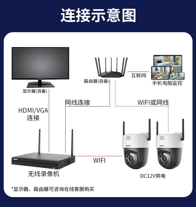 大华无线监控套装400万室外摄像头球机wifi云台跟踪语音对讲手机