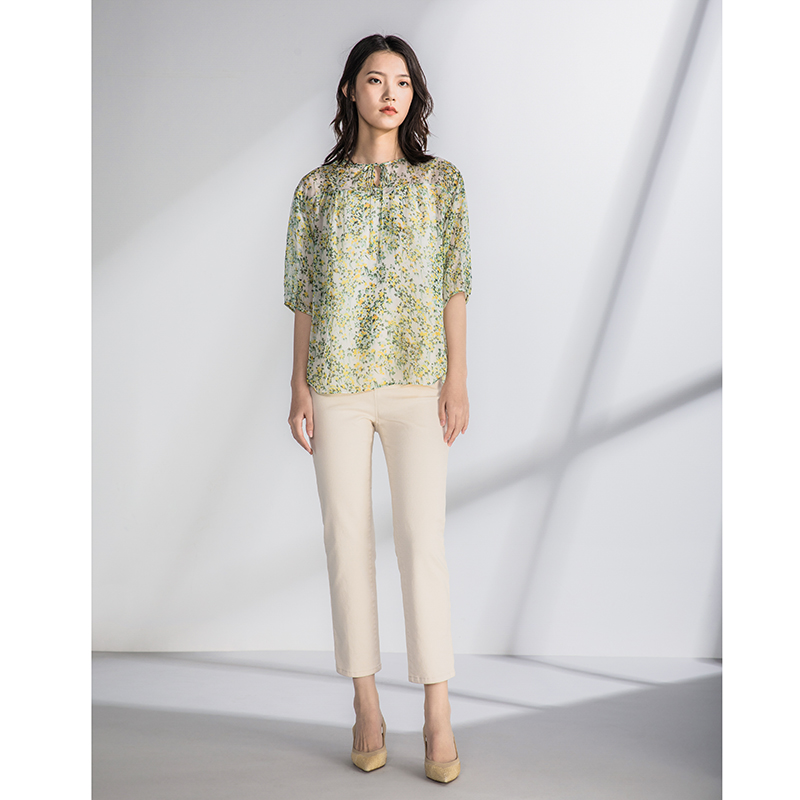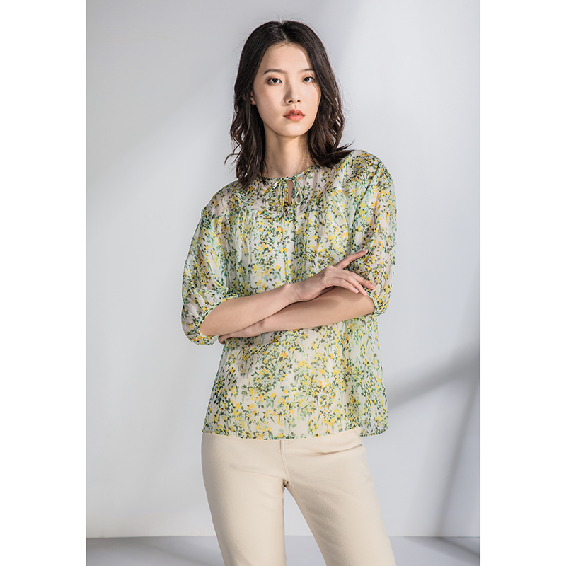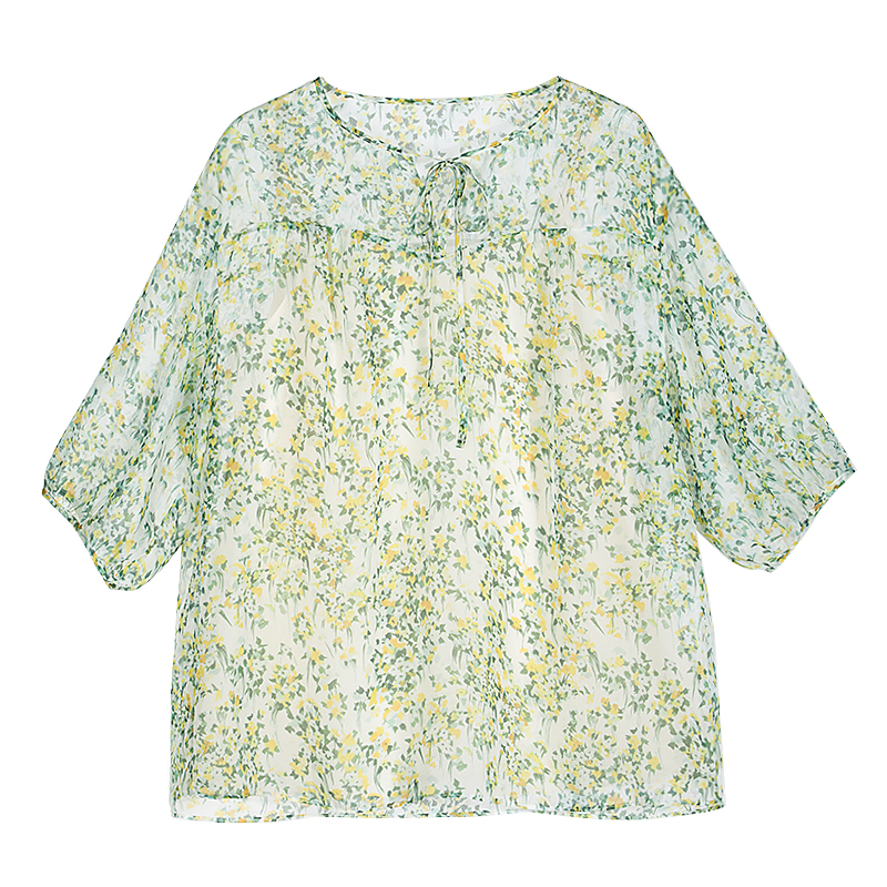 Yifini/易菲印花碎花宽松中袖衬衫女夏季新款遮肉雪纺衫上衣