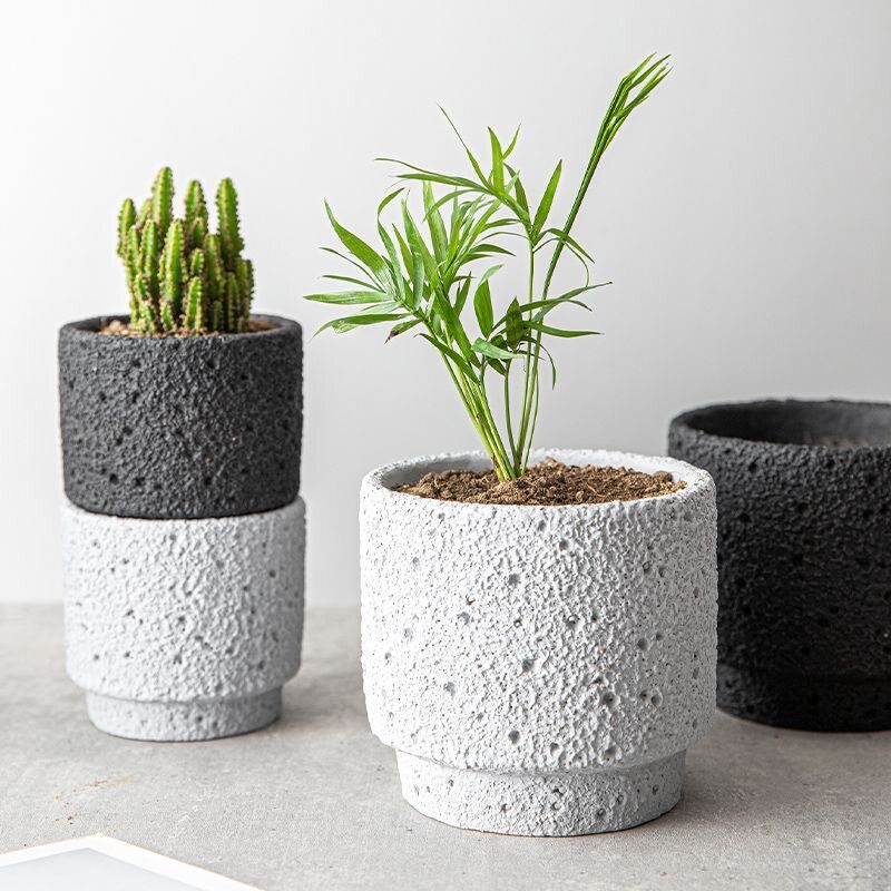 北欧个性简约ins风月球纹理多肉盆栽室内水泥花盆高款口径新款