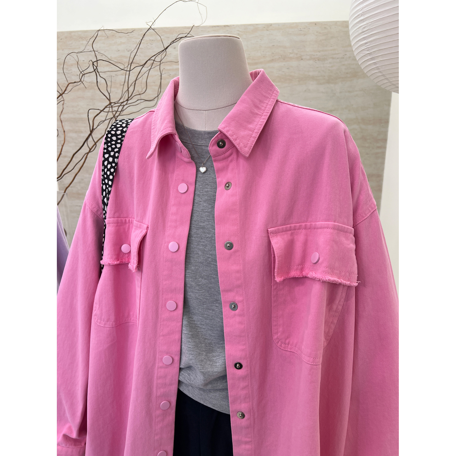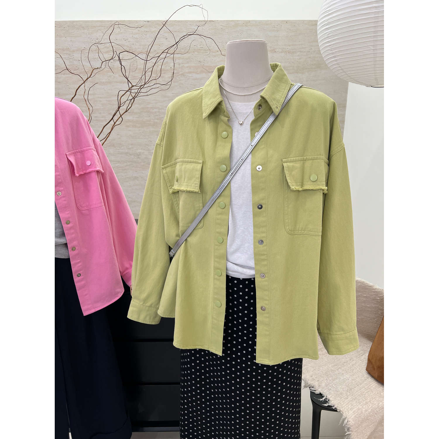 韩范工装双口袋2025春装宽松显瘦中长款棉质长袖衬衫外套女百搭