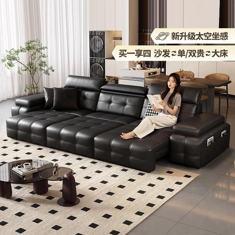 劳伦斯电动多功能真皮沙发床客厅头层牛皮可伸缩大小户型直排沙发