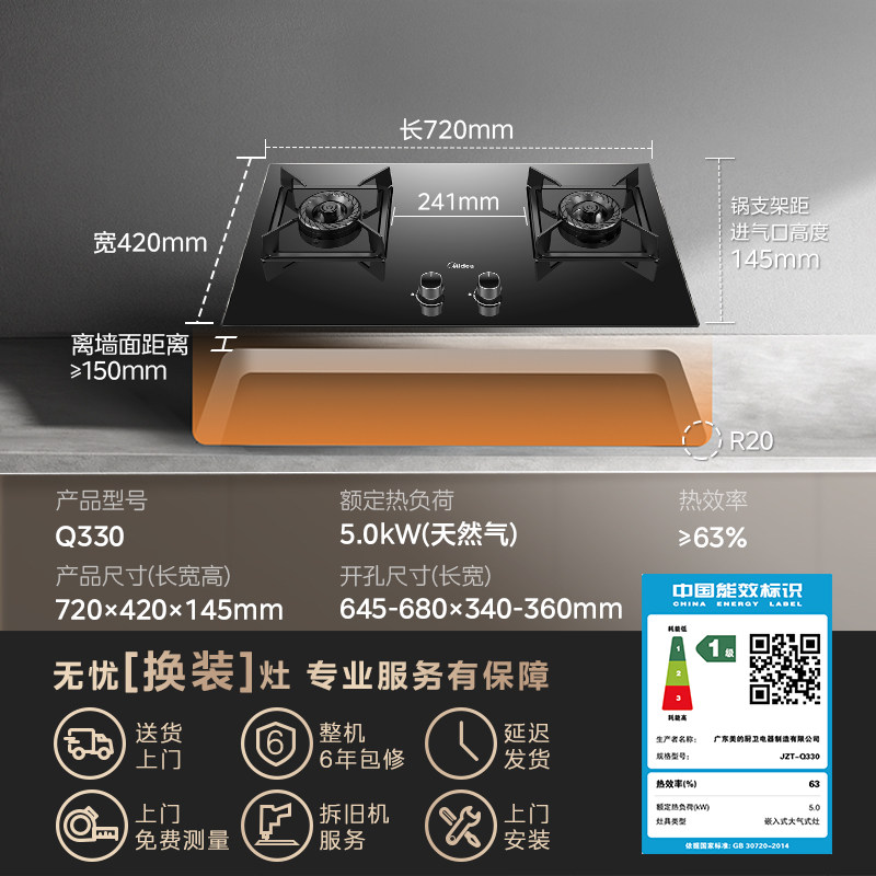 美的燃气灶家用厨房双灶液化气台式嵌入式节能猛火打火灶新款Q330