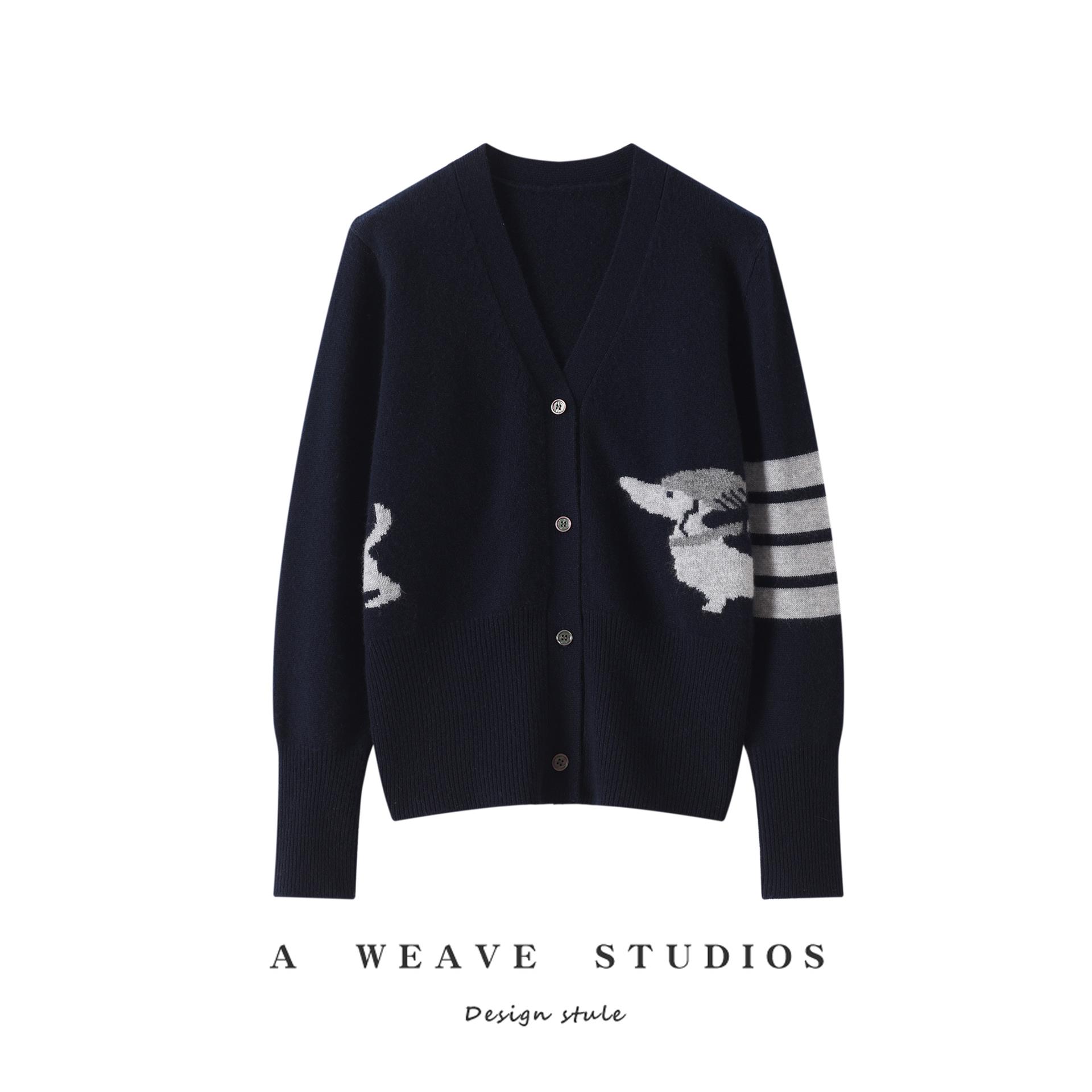 2025新款韩版山羊绒衫女V领宽松针织开衫毛衣刺绣打底衫上衣外套