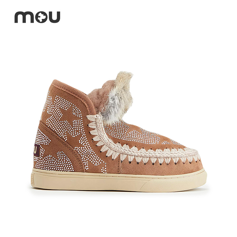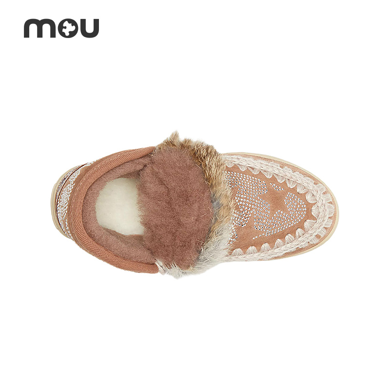 mou冬季爱斯基摩星钻貂毛短靴羊皮毛一体圆头平跟雪地靴女鞋