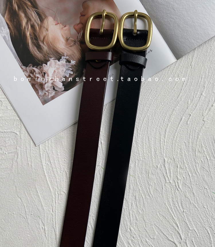 包邮!裤子Bi备复古铜色扣女士二层纯色牛皮简约百搭牛仔风衣腰带