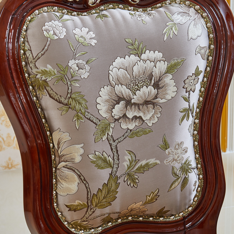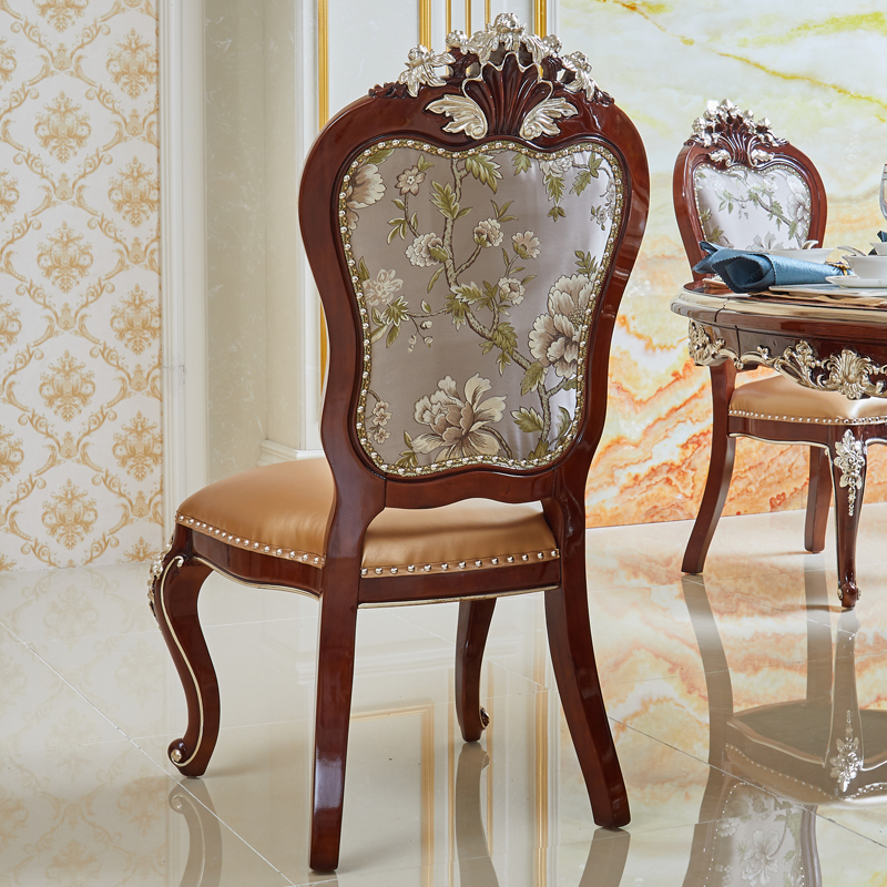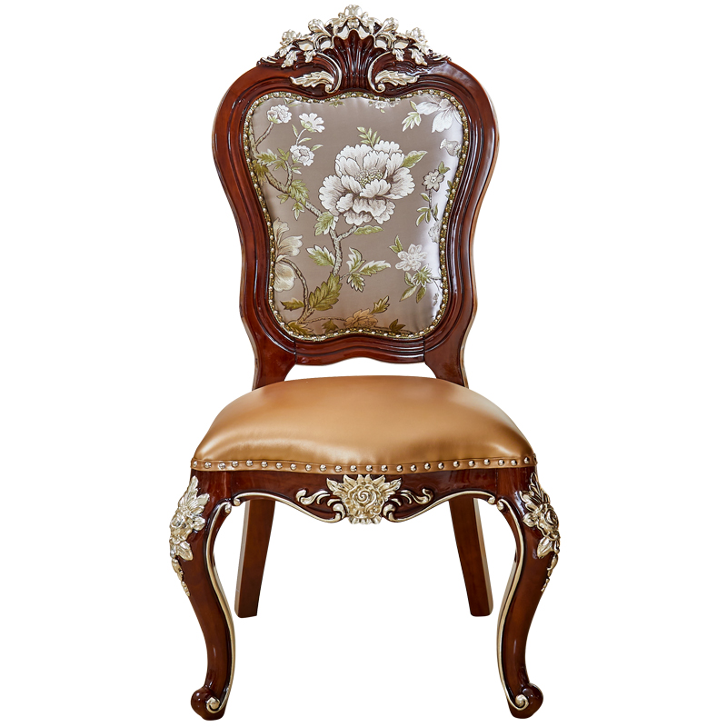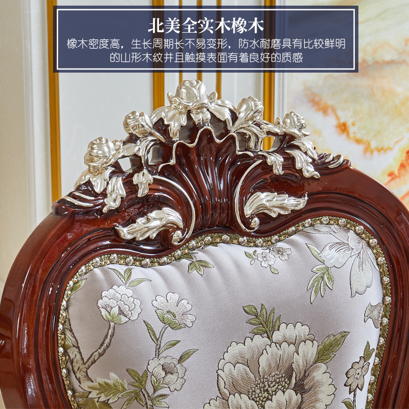 欧式真皮餐椅 美式复古靠背椅实木家用刺绣书房椅子吃饭餐桌椅子