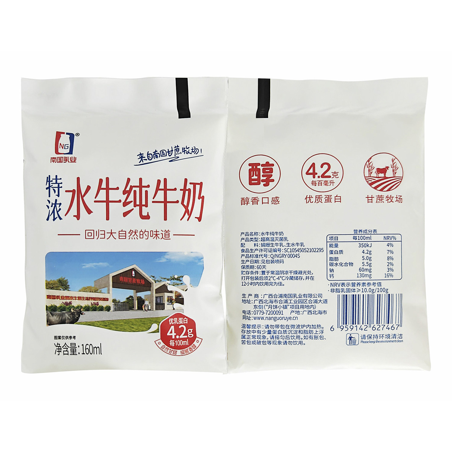 南国乳业特浓水牛纯牛奶160ml*12袋 4.2g酪蛋白 学生儿童早餐牛奶