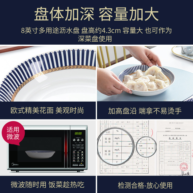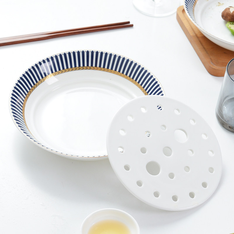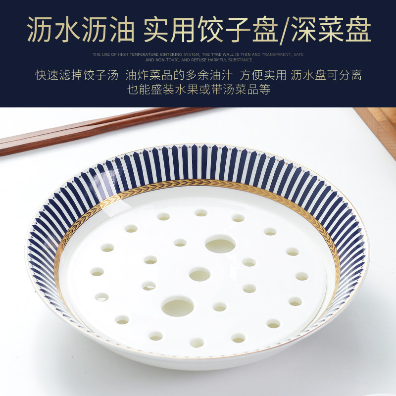 家用骨瓷饺子盘带屉盘子控水控油滤网盘欧式炸鸡盘大号果盘深菜盘