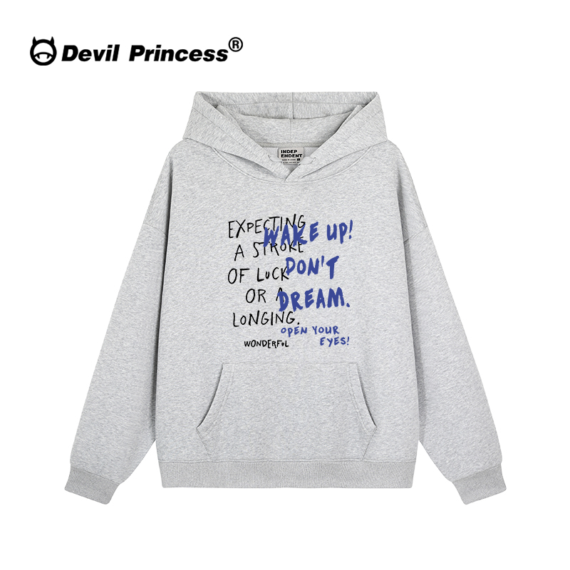 美式慵懒风设计感字母印花灰色连帽卫衣女街头宽松秋季薄款上衣潮