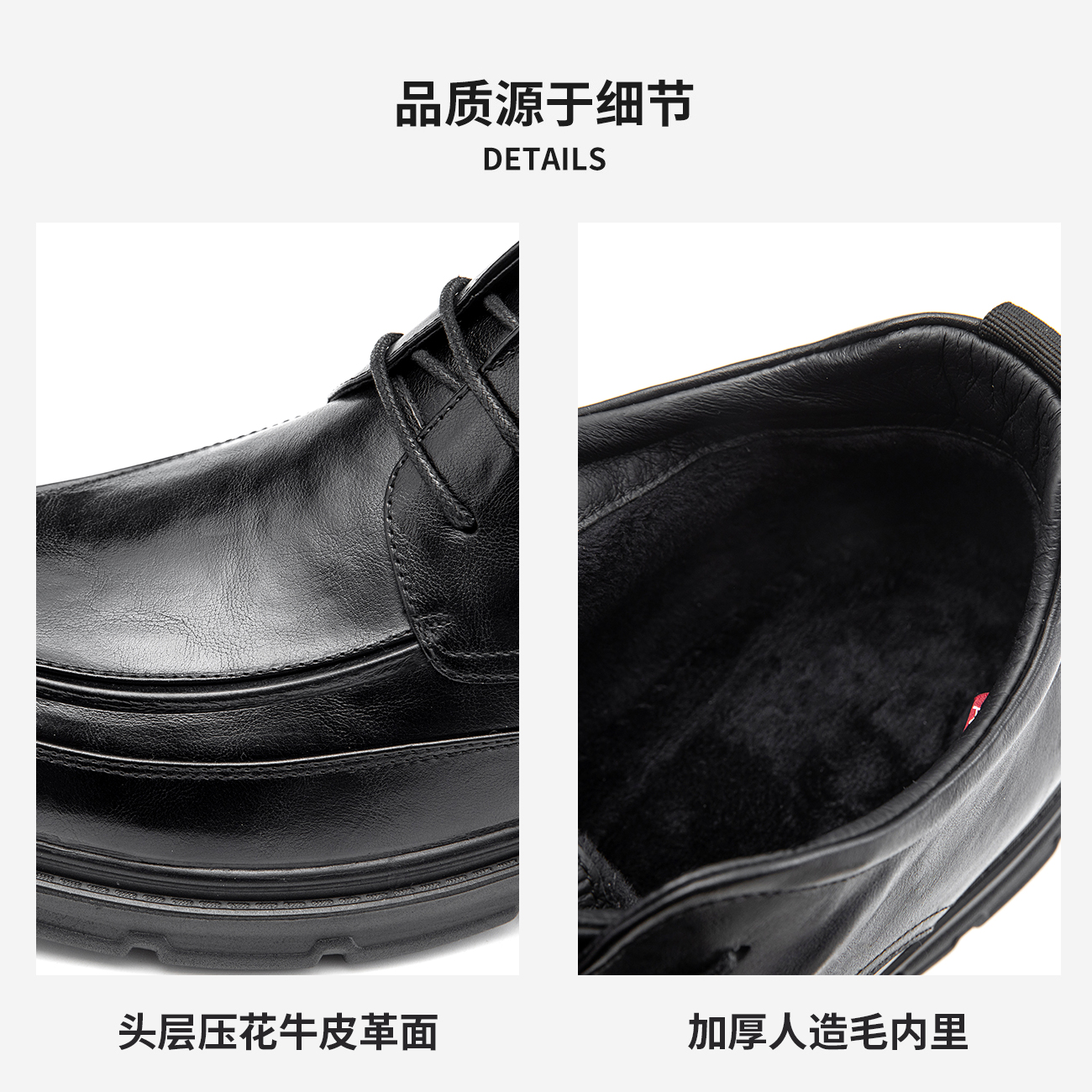 奥康加绒头层牛皮棉皮鞋