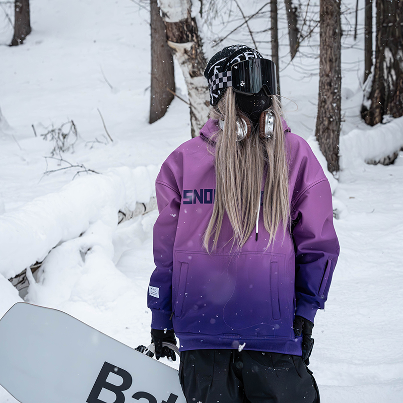 雪否 渐变色单板滑雪防水over size宽松加绒透气男女室内滑雪卫衣