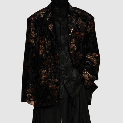原创男装新款西服外套2025春夏花卉图案小众宽松西装帅气花外套潮