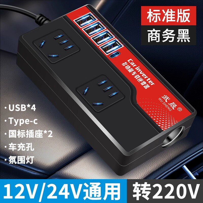 车载充电器逆变器12V24V转220快充点烟器转换插头USB车充插座新款