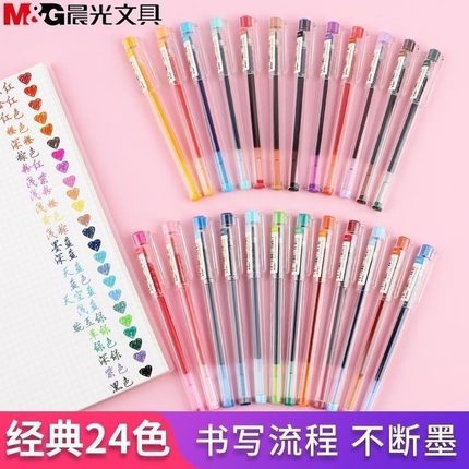 12支 晨光彩色中性笔手账笔标记笔多色本味全针管0.5mm蓝色天空蓝