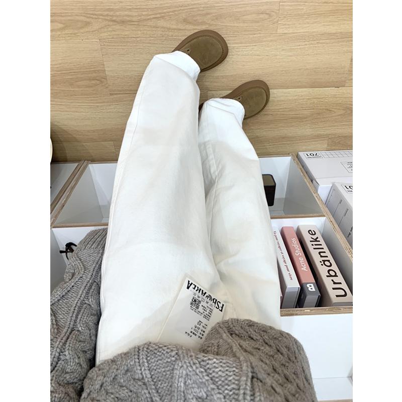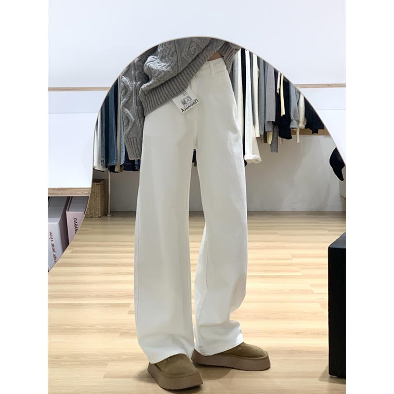 韩系春季白色高腰阔腿牛仔裤女小个子宽松显瘦直筒裤休闲拖地长裤