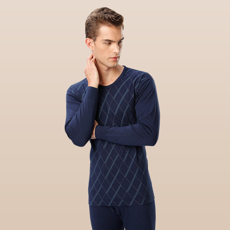 花系保暖内衣男士青年纯棉秋衣秋裤打底棉毛衫男套装全棉线衣线裤