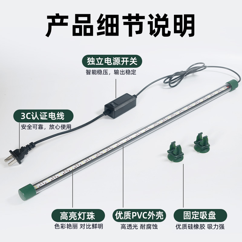 超亮全光谱白光鱼缸灯led灯纯白灯蝴蝶鲤水族箱照明T4水草灯防水