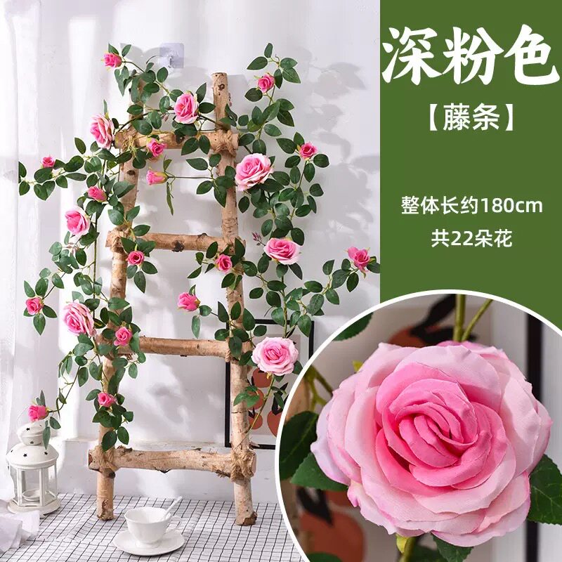 仿真玫瑰花藤条网红景点拍照打卡花墙背景户外造景瀑布造景花艺新