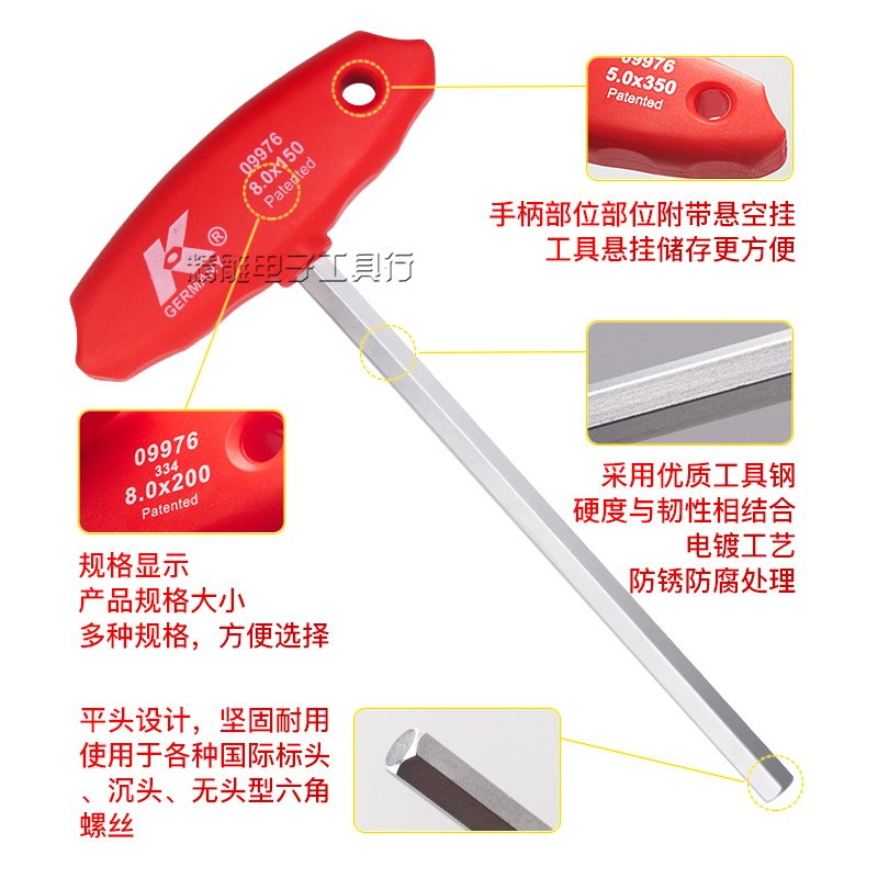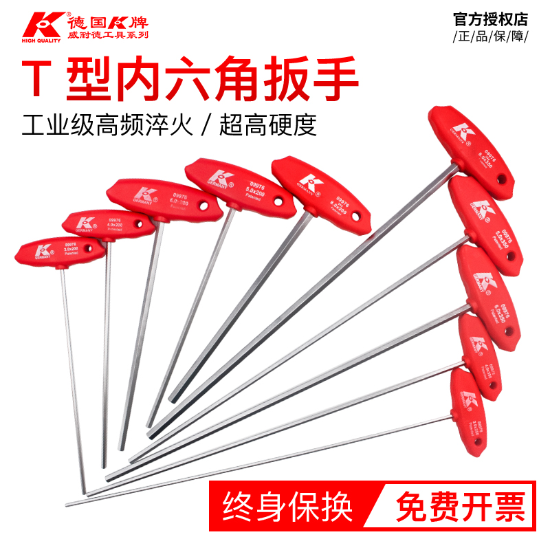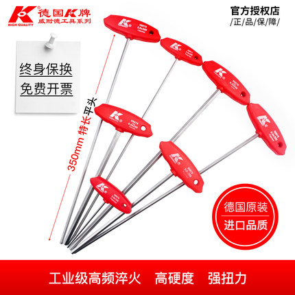 德国K牌进口T型内六角扳手加长平头6角螺丝刀 带手柄特长扳手单个