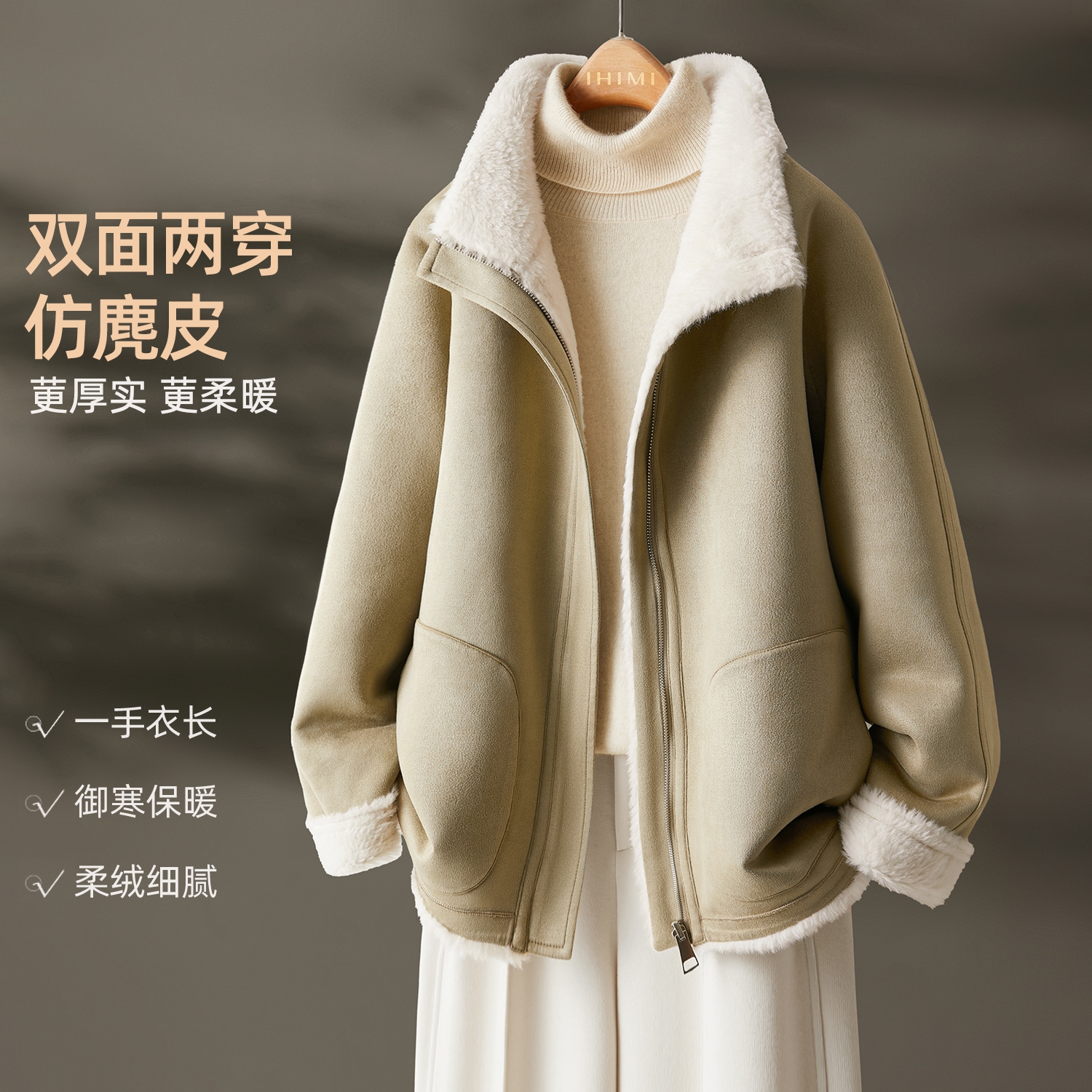 【会员8折】IHIMI海谧双面可穿仿麂皮一手长短外套女冬季温暖夹克