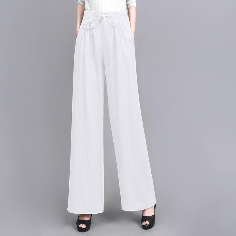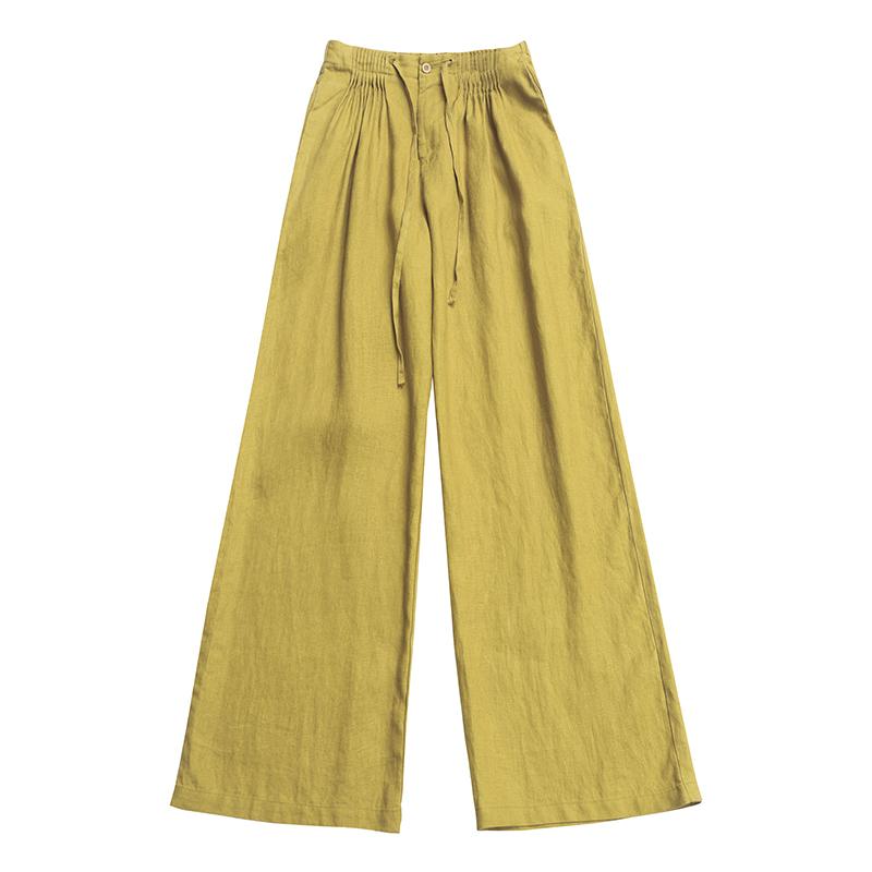 亚麻阔腿裤女2025新款秋季薄款高端系带窄版松紧腰显瘦减龄直筒裤