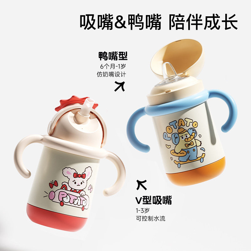 小土豆吸管保温杯婴幼儿宝宝1到3岁儿童奶瓶鸭嘴婴儿专用保温奶瓶