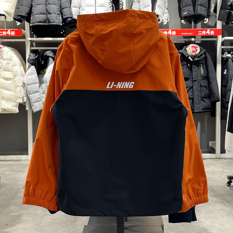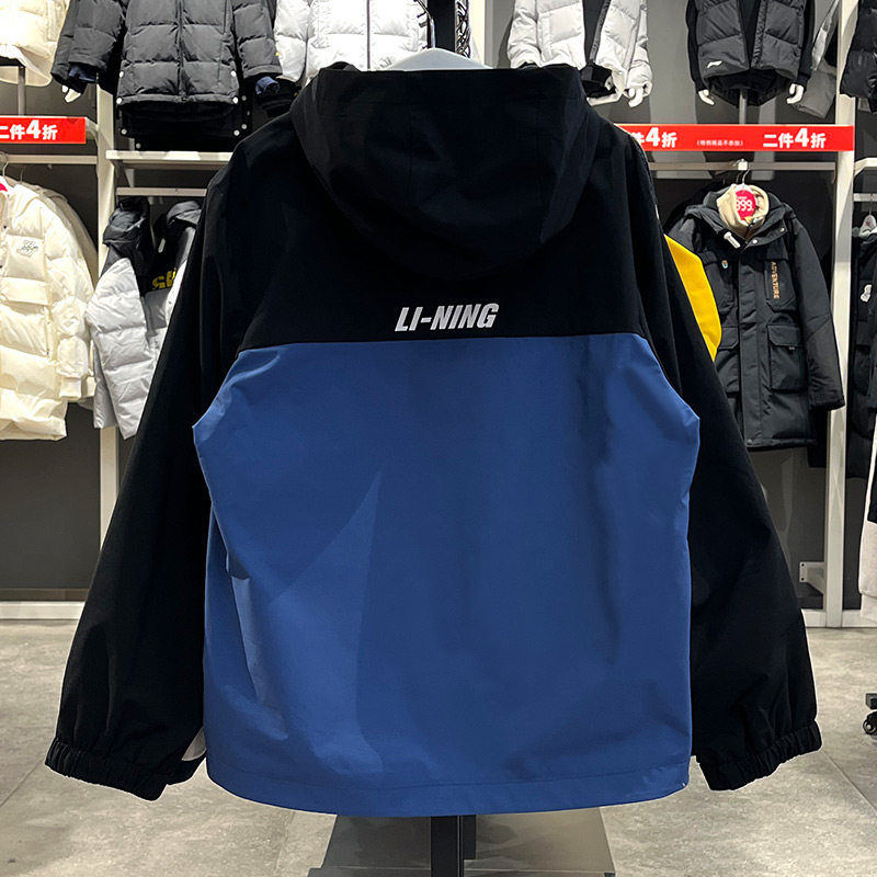 李宁男大童篮球系列运动风衣2025春季新品宽松连帽外套YFDW015