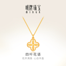 明牌珠宝黄金银杏叶项链 足金花丝工艺珍珠套链杏得识卿AFB0216