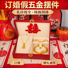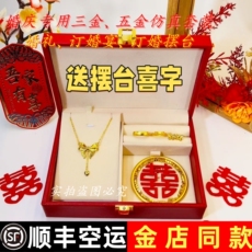 结婚仿金项链假五金套装订婚婚庆假黄金摆台摆件仿真三金首饰一套