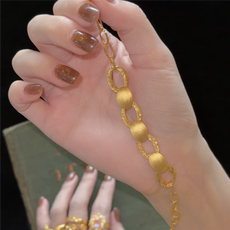 沙金手镯古法传承仿真黄金色素圈手镯女实心金镯子手环不掉色首饰