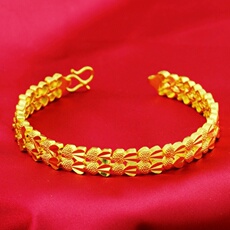 新中式镀黄金色繁花手镯女款时尚百搭镯子手饰新娘婚庆假三金首饰