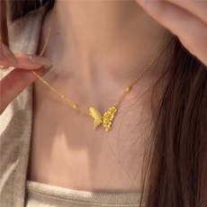 古法拉丝工艺繁花蝶梦项链女黄金色轻奢复古千金感蝴蝶花朵锁骨链
