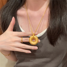 5G硬金工艺花丝镂空爬藤葫芦毛衣链女仿黄金色福禄胖墩墩葫芦项链
