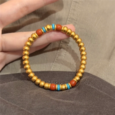 古法沙金南红老型珠手串女弹力绳黄金色转运珠苹果珠手链手饰复古