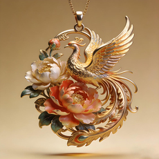丹凰花佩非遗凤凰牡丹吊坠黄金色国潮手工时尚高级感项链长辈礼物