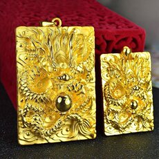 3D硬足金999男士吊坠黄金龙牌霸气 生肖龙项链 送父亲礼物饰品