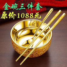 金碗999a纯金熟金筷子食用勺三件套足金餐具实心防滑金筷子金耳勺