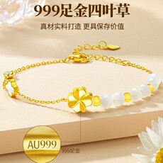 周太大福同款黄金足金999四叶草手链女轻奢小众5G硬金配件手饰品