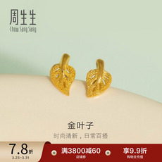 周生生珠宝饰品足金闪砂树叶耳钉耳饰女款68725e定价