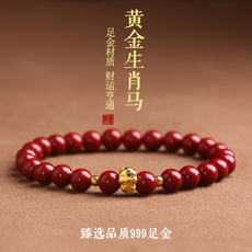 正品天然朱砂手串黄金转运珠真足金手链男本命年女款送妈妈