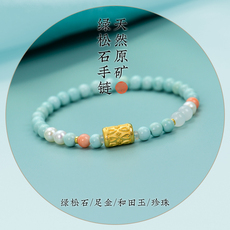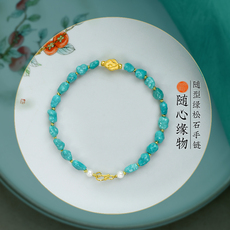 天然无优化原矿绿松石足金手链 春夏新款时尚清新宝石女款细手串
