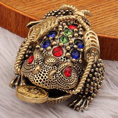 复古蟾三镂空镶钻装饰品金咬金属书房工艺品黄铜足金摆件客厅钱蟾