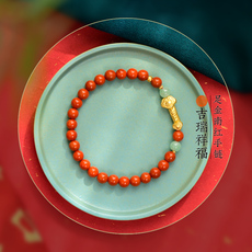 原创瓦西料5mm南红玛瑙手串 足金如意新年本命年红色女款手链礼品