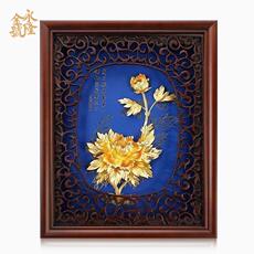 古窗花牡丹立体足金金箔画客厅简约装饰画创意家居饰品挂画壁画
