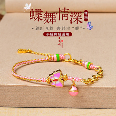 蝴蝶脚链女黄金镀足金铃铛宫铃手链甜美粉紫气东来本命年情侣脚绳