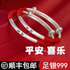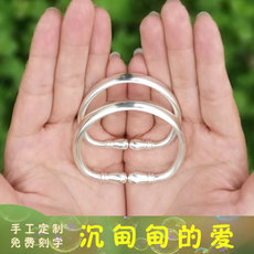 马年宝宝纯银手镯999足银一对实心镯子送婴儿童满月周岁生日礼物