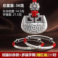 老银匠s999纯银婴幼儿长命锁纯银女宝宝银饰儿童节礼物新生银手镯
